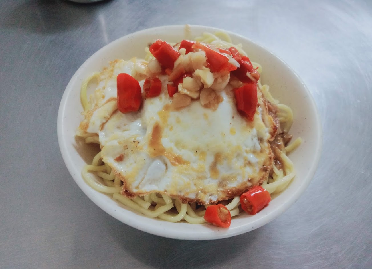 肉角飯+荷包蛋+蒜頭辣椒 絕配!