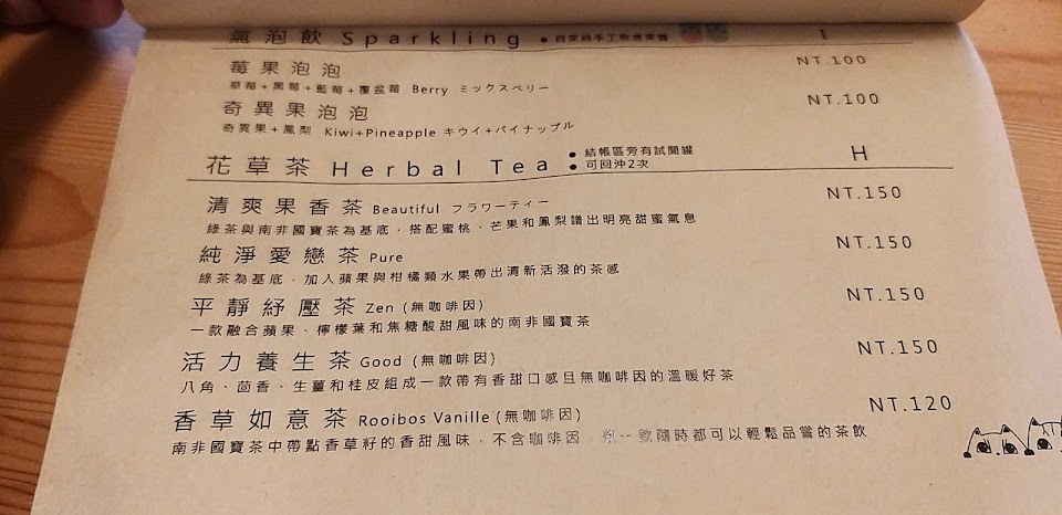 生乳酪的口感是好的,但一天只有七種口味可以選擇,有些想吃的口味不一定何時會出,花果茶甜度口感剛剛好,甜點茶點單價偏高,還有規定低消,Cp值不高