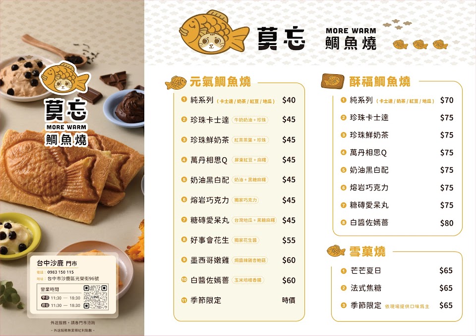2024最新在地推薦餐廳的菜單_莫忘鯛魚燒(台中沙鹿店)的菜單、圖片