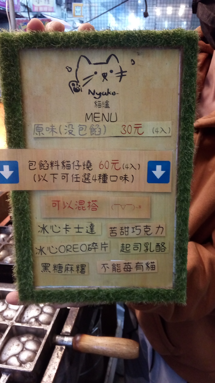 店家位於沙田路和光華路的交接、在古早味蛋糕的同一條巷子內。雖然攤子不大、但是非常顯眼,看到「貓」的佈置和紅色布條,就是他們家沒錯了!