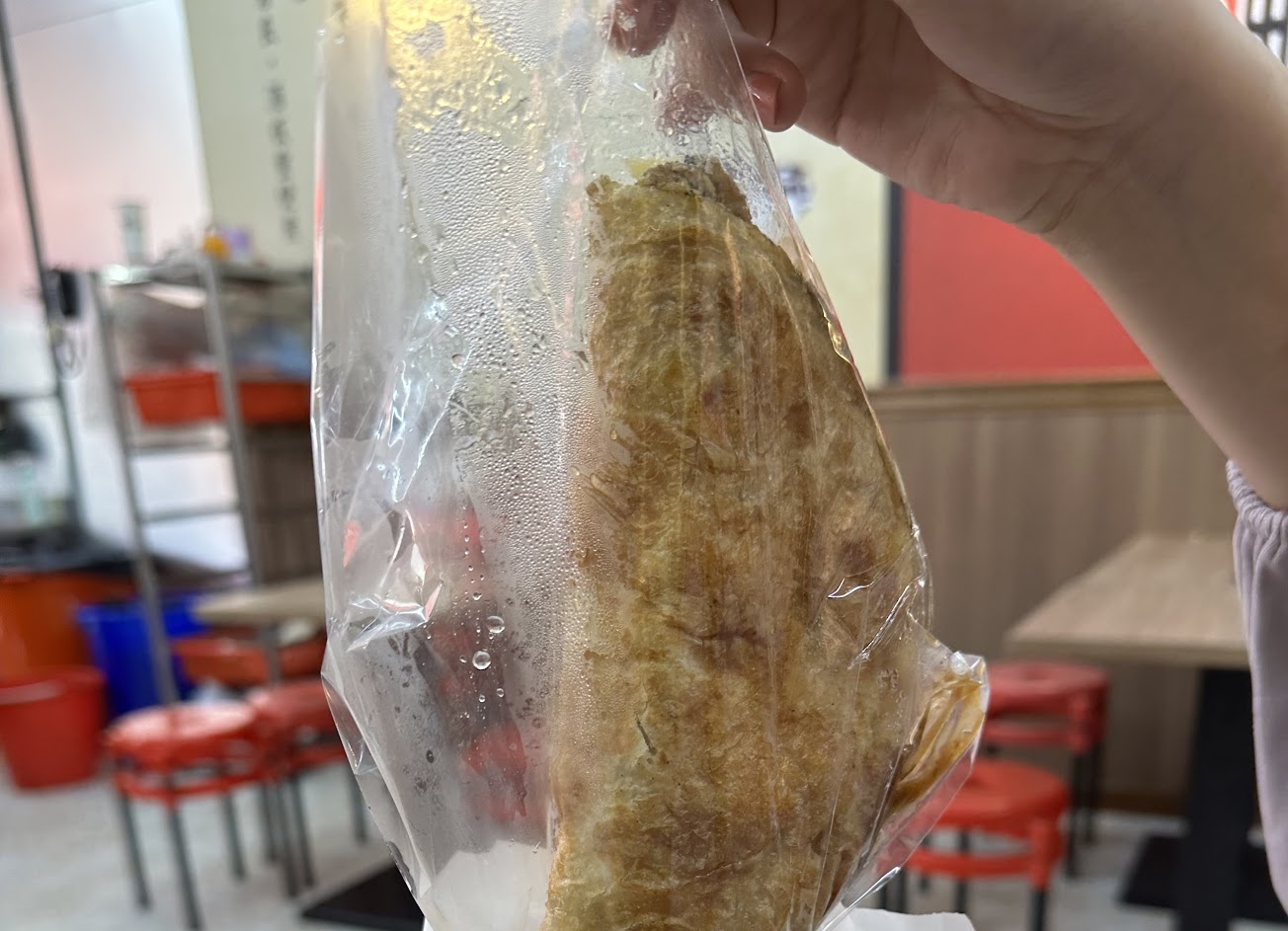 融合了台北的炸蛋蔥油餅跟蛋液融黏在一起的好味道