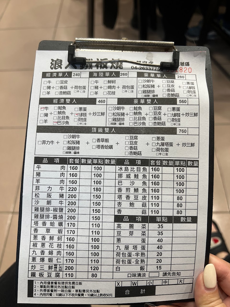 2024最新在地推薦餐廳的菜單_浪人鐵板燒的菜單、圖片
