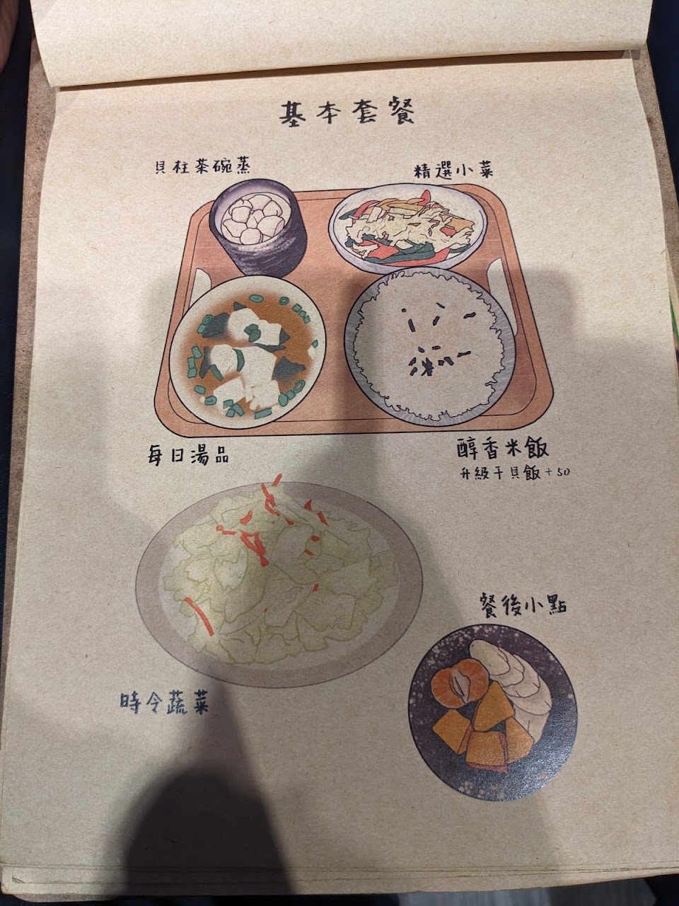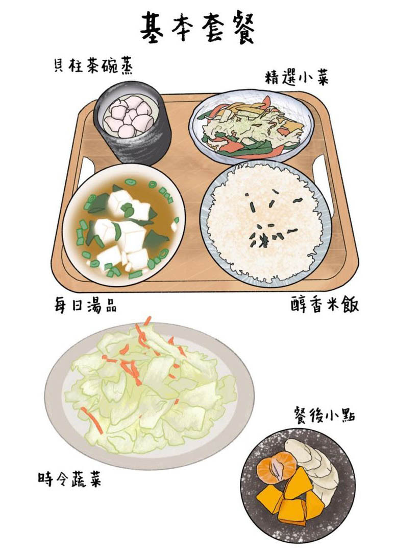 套餐有小菜,茶碗蒸與湯,飯