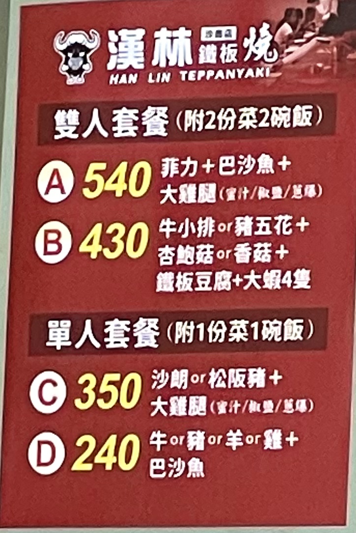 2024最新在地推薦餐廳的菜單_漢林鐵板燒(沙鹿店)的菜單、圖片