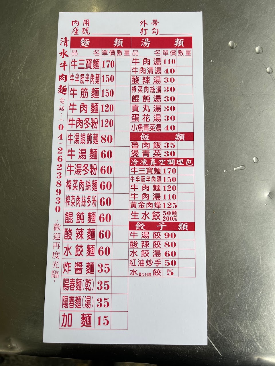 2024最新在地推薦餐廳的菜單_清水牛肉麵的菜單、圖片