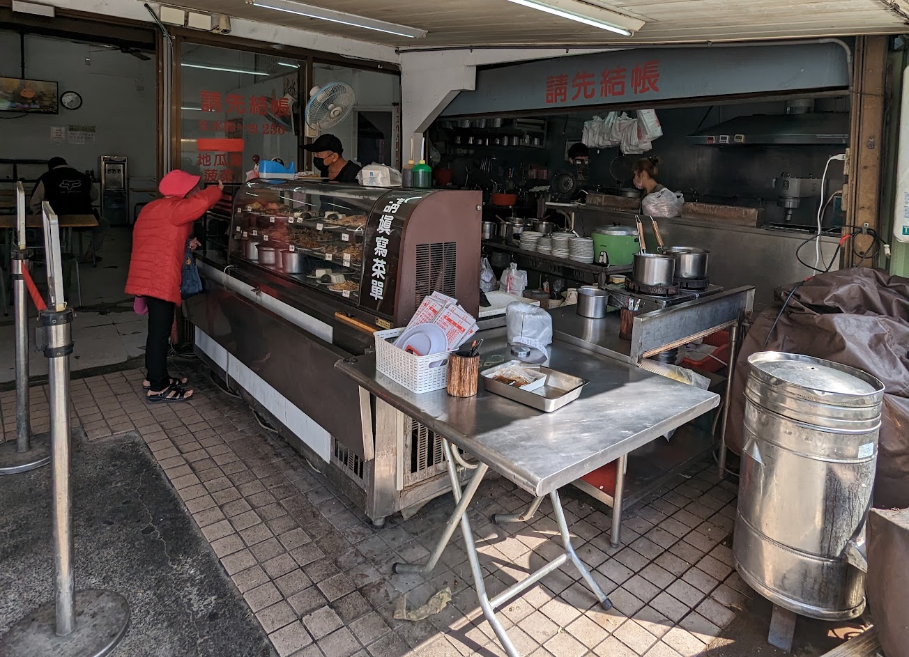 內用拿菜單進去找座位後再出來外面櫃檯點餐順便結帳,櫃檯也有櫥櫃擺著各式小菜可以直接跟收銀人員點