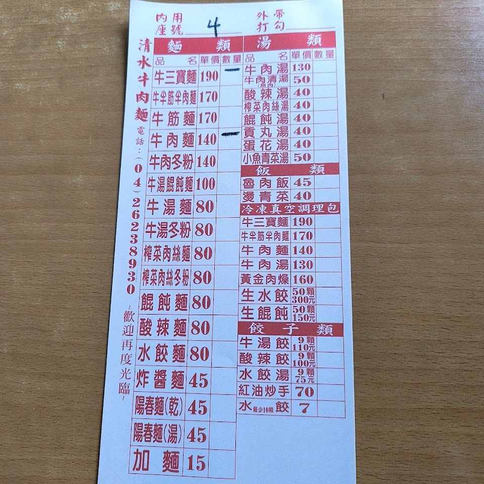 清水警察局旁,先收費後送餐