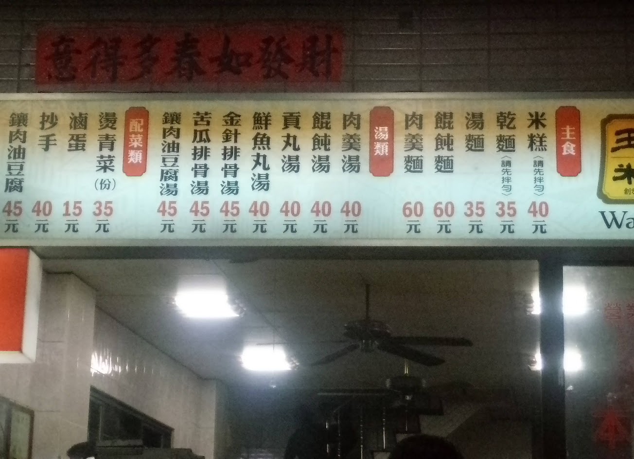 長糯米做的,加肥油肉燥,算重口味,吃不出米本身的香氣,好吃程度算中上,湯非常普通,貢丸不Q,扁食偏硬,整體來說比阿財還算是有好吃那麼一點
