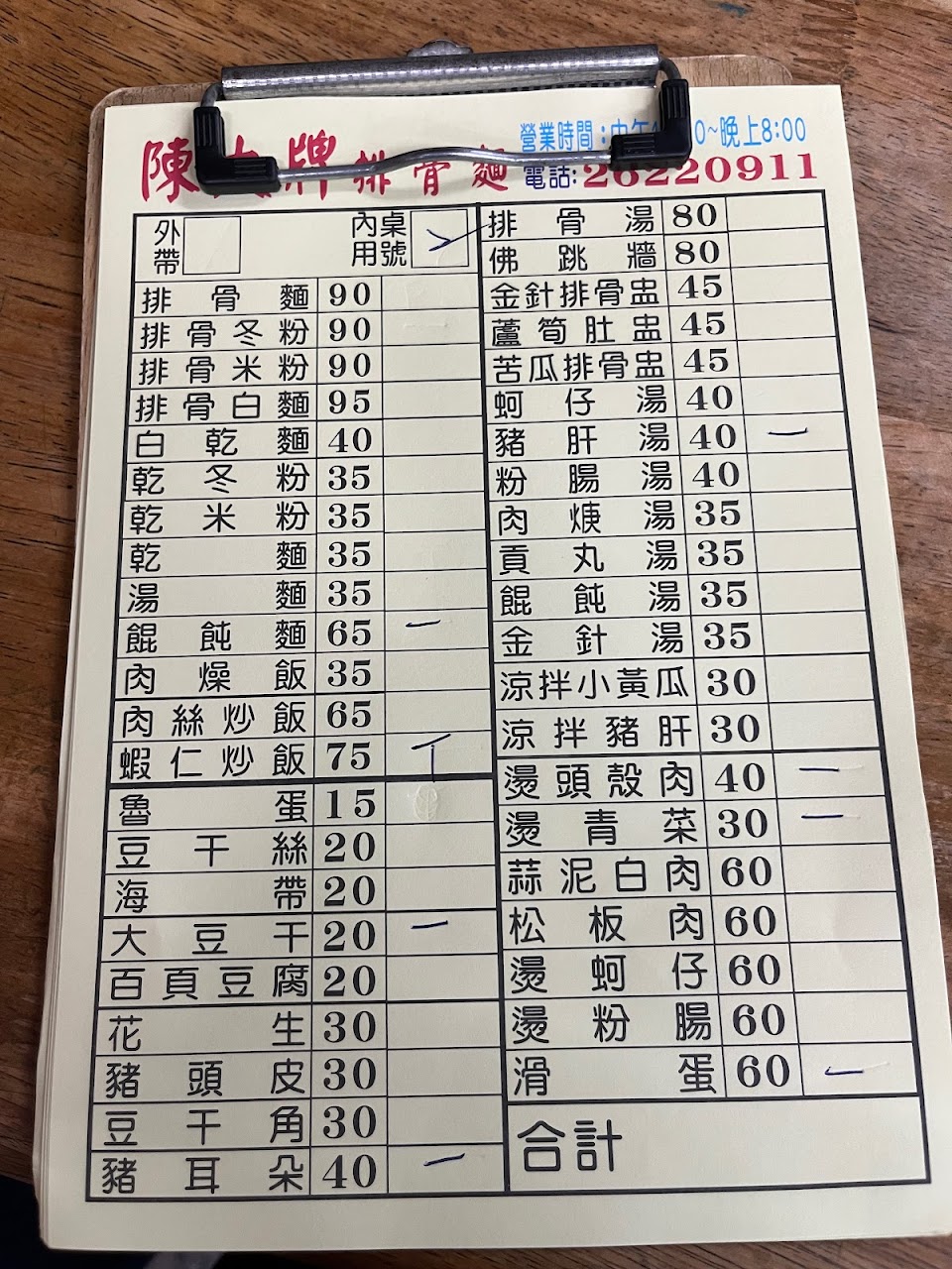 粉腸湯 蚵仔湯 40 涼拌豬肝 30
