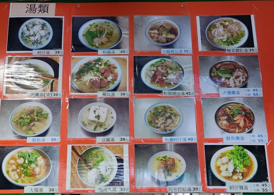 米糕 蚵仔湯 豬肚湯 大腸豬血湯 筒仔米糕 肉羹湯