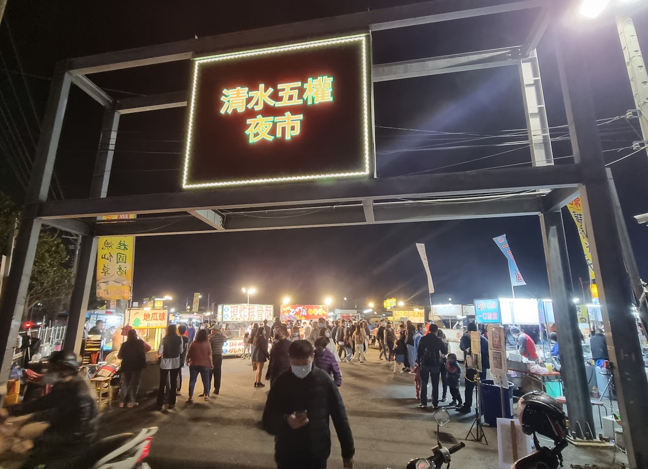 大人小孩放電的好地方清水五權夜市有兩個停車場,讓來這裡逛夜市的人方便停車,停車場有專人指揮服務很棒,停好車之後可以直接入場,入場處也備有酒精消毒和體溫測量,整個夜市的規劃非常有條理,觀察夜市的攤位主都偏年輕,在攤位的設計上都很用心,整體感覺就是整潔又衛生!夜市內的小吃非常多,賣地瓜球的大概有兩三攤,每一攤都各具特色,主要路口的地瓜球八粒只賣$10,偏小粒了點一樣好吃,另外其他的比較大吃起來也Q,攤位中有一攤牛肉湯,推推推推推?不輸給台南在地的牛肉湯喔!大腸蚵仔麵線也是很推薦的整個攤位乾淨整潔又衛生,好吃!! …