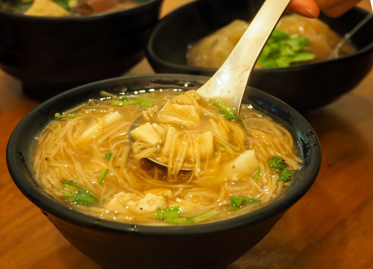 台北數一數二喜歡的肉圓跟麵線,每次來通化街都要先吃一碗。肉圓的內餡是有筍乾的那種,外皮有點厚但是很Q彈的口感,配上特製醬汁超級好吃。麵線跟其他地方不一樣的是加了花枝,加上醋跟店裡招牌辣油更提味。大腸豬血湯的豬血滑嫩如豆腐,大腸很夠也很嫩,整碗湯充滿韭菜、芹菜、酸菜、油蔥香氣。經營模式是小吃店,服務品質不多加評論。