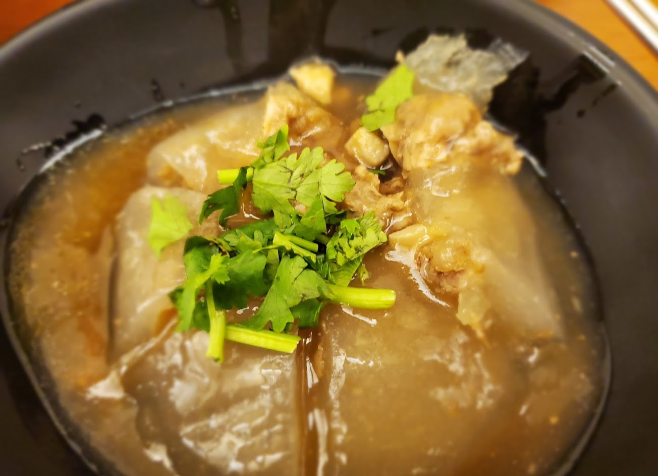肉圓本人,皮薄很Q,但內餡豬肉+筍丁就中規中矩,符合50元的cp值,但真的沒有特別驚艷或記憶點。 粿本人,有點軟,但不至於軟爛,但以含餡量(芋頭、肉末等等)來說,45元真的稍貴,所以cp值還好。 2者有點油,吃到後面食物溫度降下來的時候,油就跑出來了; 2者都是醬汁很厲害很出色,尤其加上辣油,麻而不辣,多了香氣,整個層次都不一樣了!整體來說,如果順路又嘴饞是可以為了醬汁跟辣油回購肉圓跟粿⋯