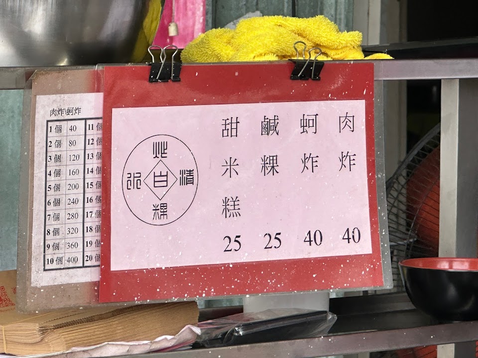 很好吃的傳統小吃,蚵嗲是加韭菜,肉嗲是加蘿蔔絲。辣醬很好吃推薦可加。甜米糕樸實美味~