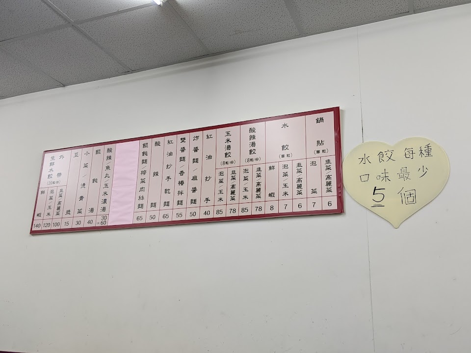 白菜水餃和炒手不錯,其他普普,蝦仁水餃不推(有菜市場的蝦米味)