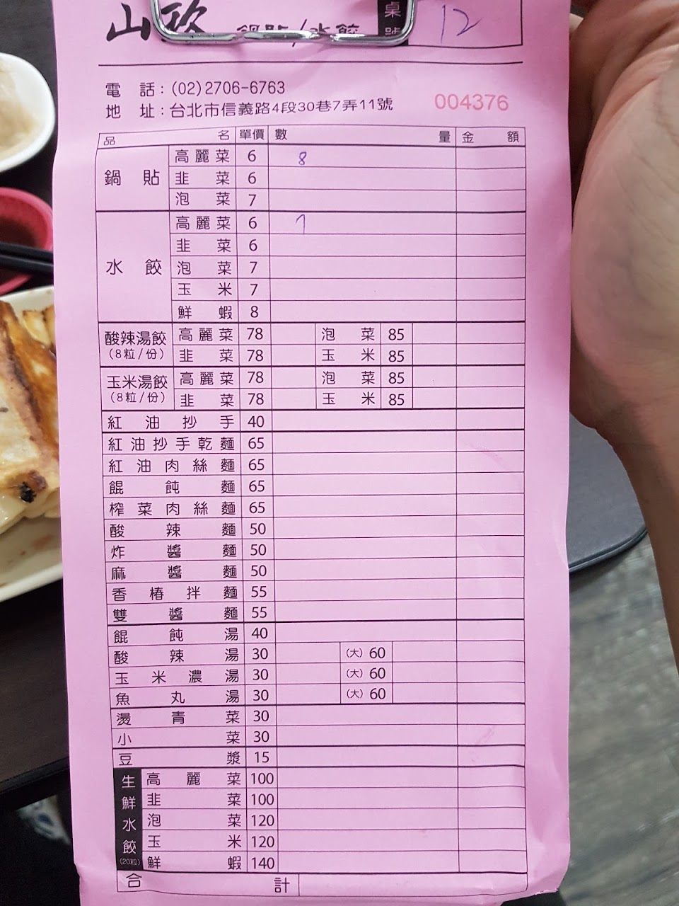 鍋貼水餃都好吃,酸辣湯讚,位置在巷子裡店面也不算多精緻,除了小菜東西真的不錯ㄘ。