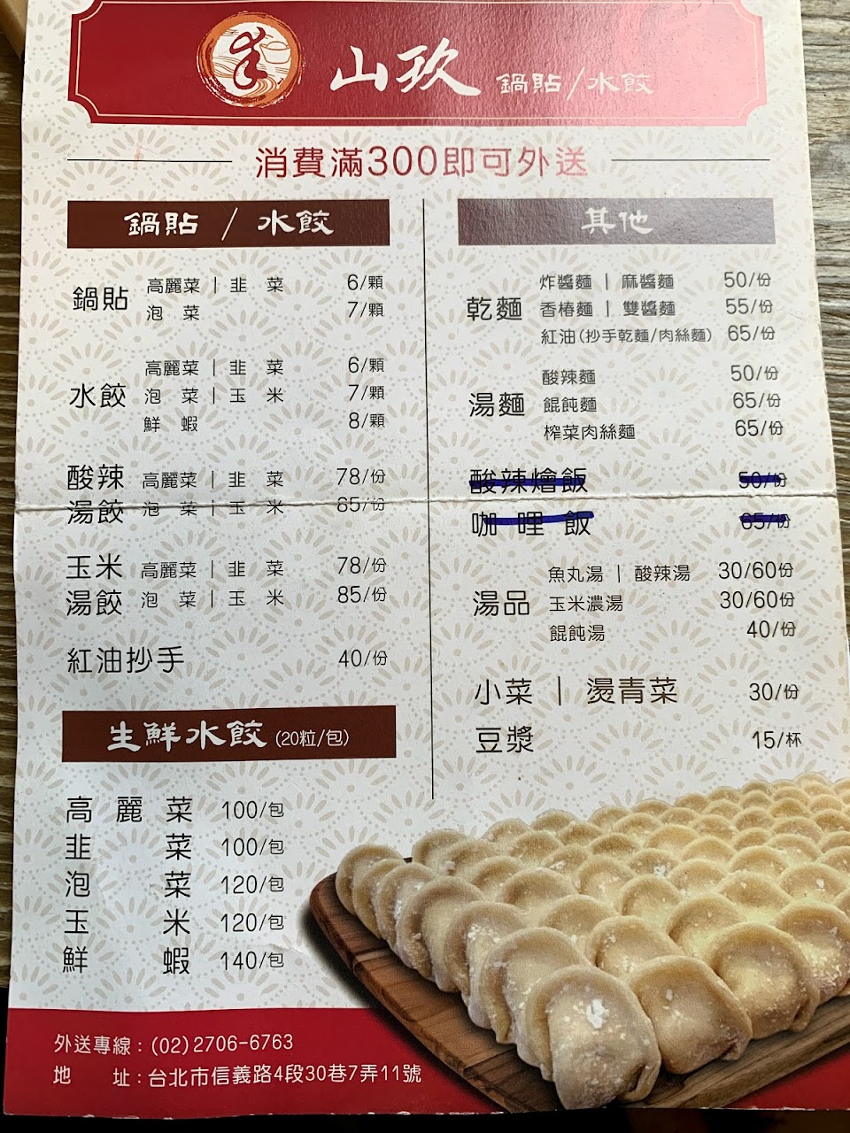 鍋貼好吃,水餃、酸辣湯尚可