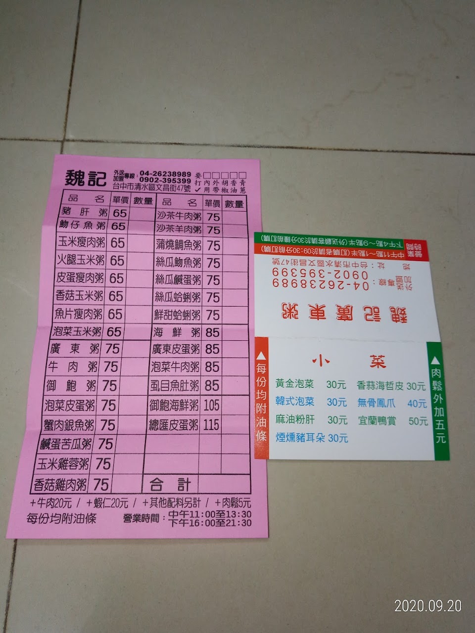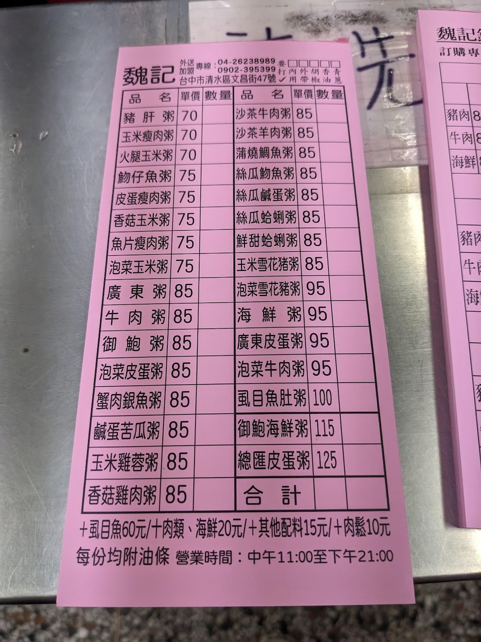 2024最新在地推薦餐廳的菜單_魏記廣東粥的菜單、圖片