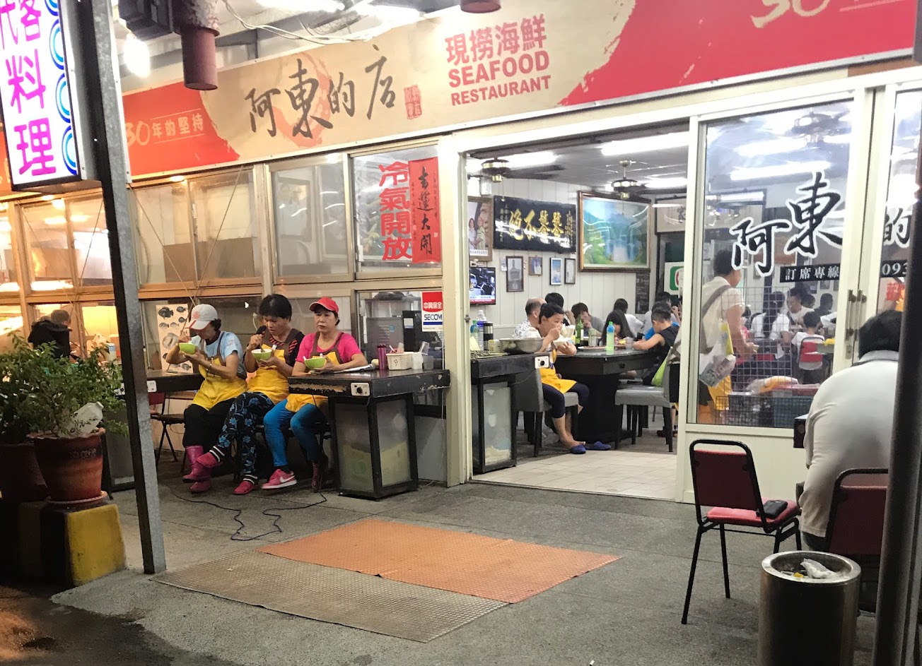 我們在魚市自己買了五樣海鮮類 四支大閘蟹,2斤白蝦,三條黃魚, 海香菇,特大蛤9顆。 魚市有一攤老闆娘很親切招呼, 最後給了我們一張名片說可以到”阿東”, 讓他們料理現吃,會送我們一盤炒青菜, 拎著魚產,越過停車場,好一段路, 眼前就四間餐廳,可以料理剛買的魚貨 或現場點菜吃。當然就直接進去 阿東餐廳了。 也沒問說想怎麼料理就直接都拿進去 拿了名片告知有否送青菜,就問我們 要點哪種?就山蘇吧! 沒回答就抓一把進去廚房。 大閘蟹來,還綁著草繩,估計就幫 蒸熟給你,結果就是桌面一堆草繩。 白蝦送來,無蔥無蒜無薑, 估計就是過滾水罷了。 黃魚用烤箱,時間久無話說。 特大蛤9顆用蒸的,來時說有一顆壞掉 幫丟掉了。上桌8顆。(喂~一顆20幾元耶) 想想,可能只有海香菇是算料理 有用蔥薑炒過。最後算帳一千多, 山蘇那盤250元。啥~青菜不是要送的嗎? 叫小妹出來結帳,說老闆都在廚房忙。 懶得為了一盤青菜爭論,生意這樣做?