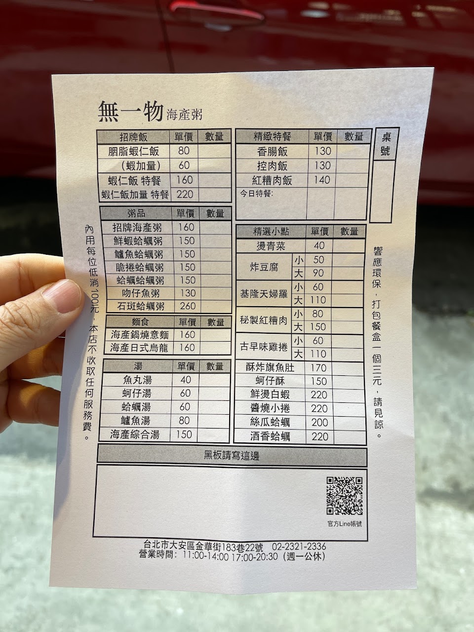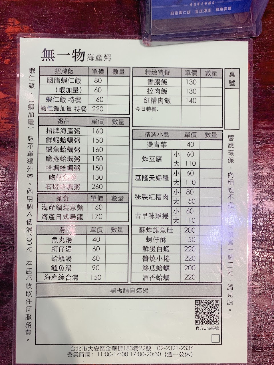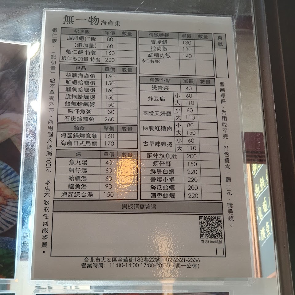 2024最新在地推薦餐廳的菜單_無一物海產粥的菜單、圖片