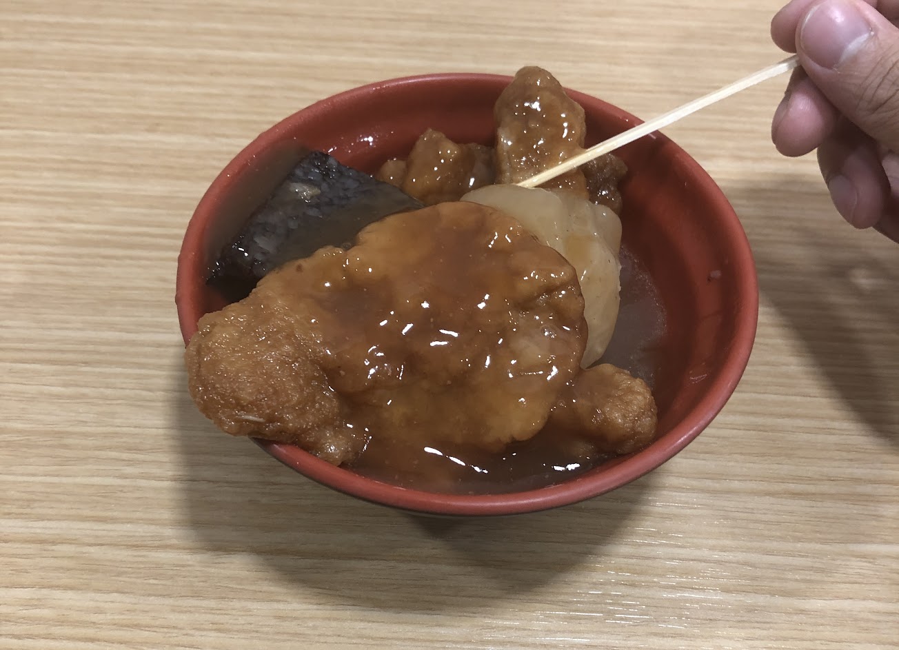 2.甜不辣是有嚼勁扎實的鹹口味,非坊間略帶甜味的,表現最優秀的是貢丸,醬料濃稠且頗甜,喜歡鬆軟偏甜口味者請繞道。