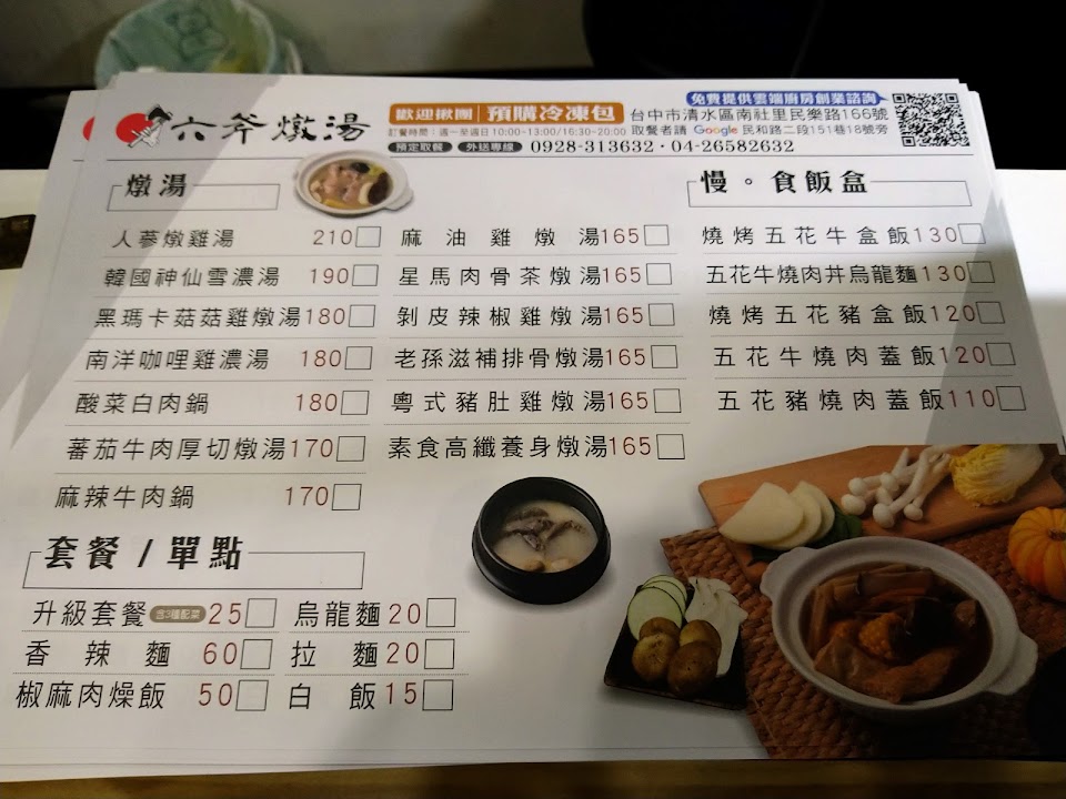 2024最新在地推薦餐廳的菜單_六斧燉湯(梧棲店)的菜單、圖片