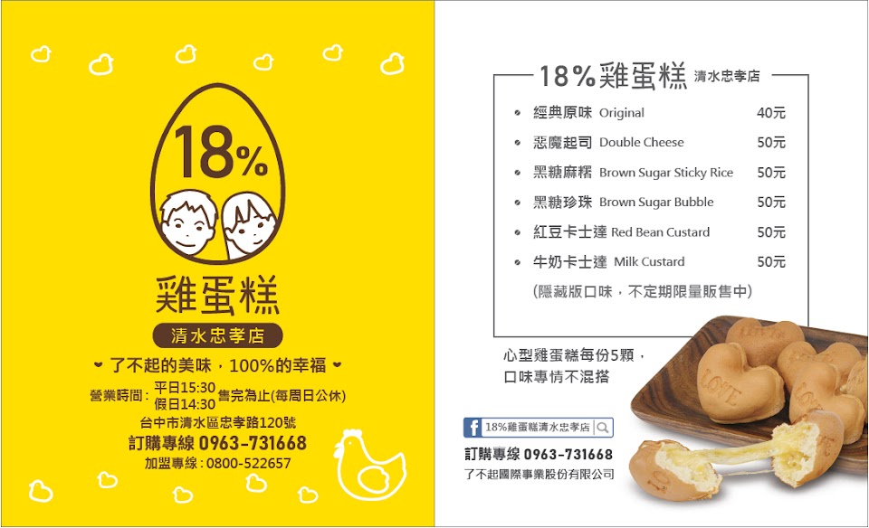 2024最新在地推薦餐廳的菜單_18%雞蛋糕清水忠孝店的菜單、圖片