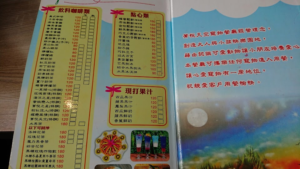 環境蟲太多,空氣不會有評論說的動物味,可能我自己喜歡動物,所以沒感覺吧?但蟲很多是真的,會擔心吃到一半蟲掉進去餐點裡