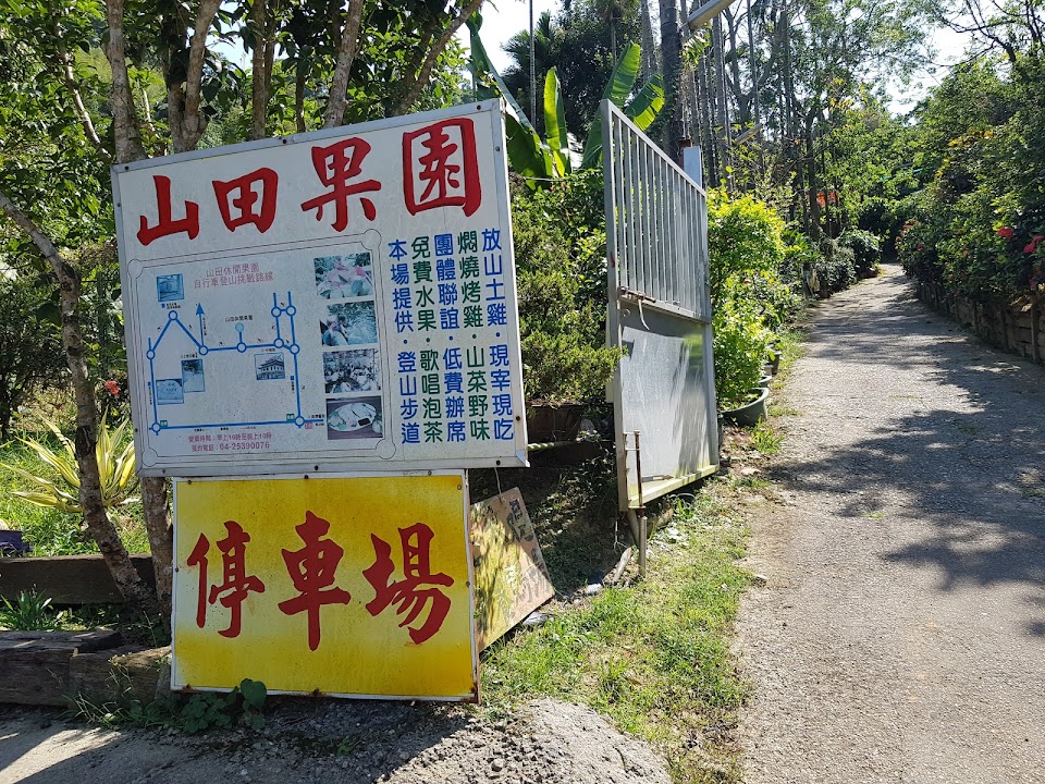 有停車場,上坡路段大概開十分鐘可到,別有洞天的烤雞餐廳,有果園咖啡廳,老闆熱情親切,有養鸚鵡小兔魚池,烤雞是預約現烤,好吃