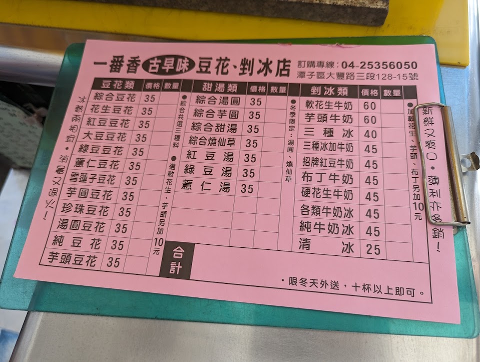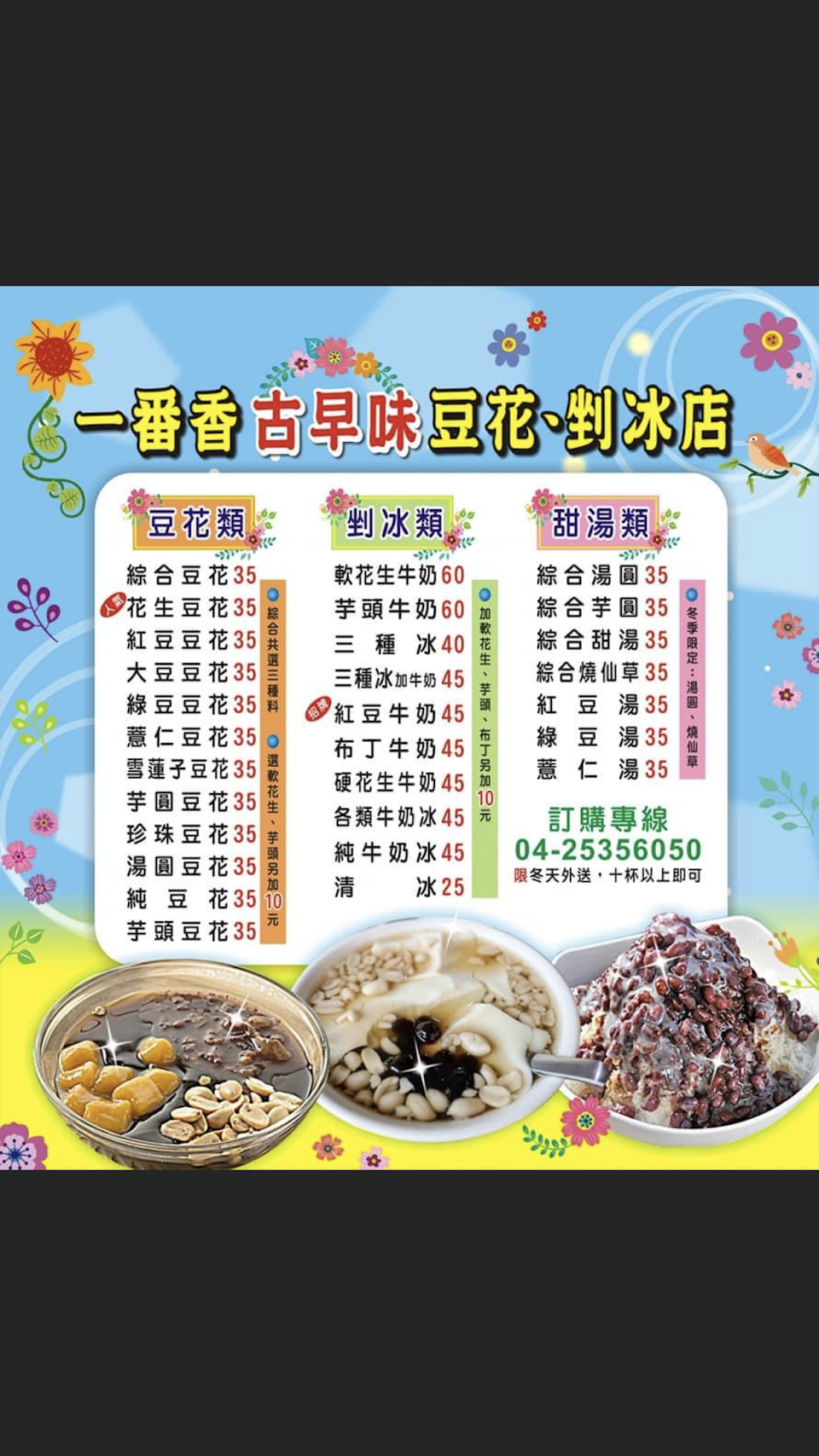 2024最新在地推薦餐廳的菜單_一番香豆花剉冰的菜單、圖片
