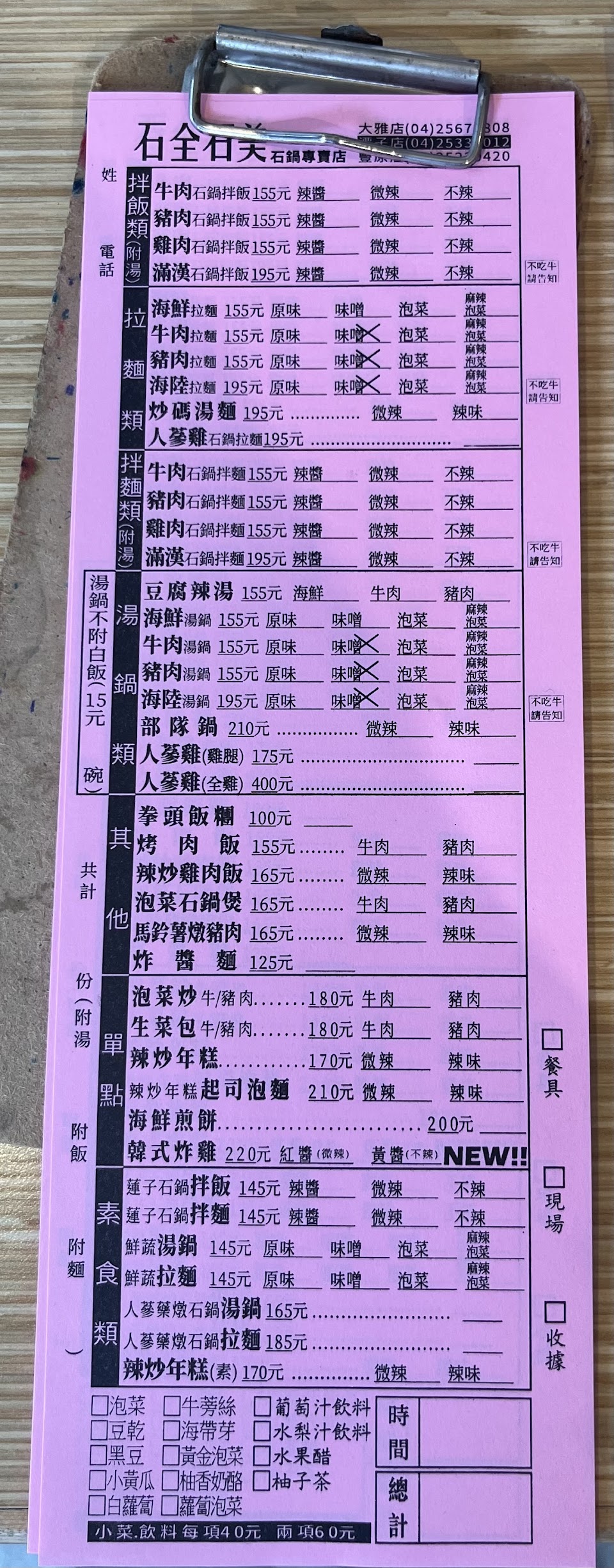 2024最新在地推薦餐廳的菜單_石全石美石鍋專賣店的菜單、圖片