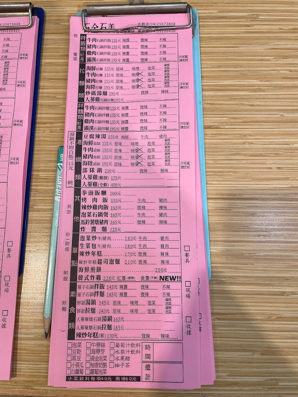 海鮮湯鍋155 看起來滿滿的但沒什麼料 蝦子新鮮 湯好喝 部隊鍋210 評論送的奶酪不好吃 沒有醇奶味 口感也碎碎的 店內有提供麥茶 店員態度好 可電子支付