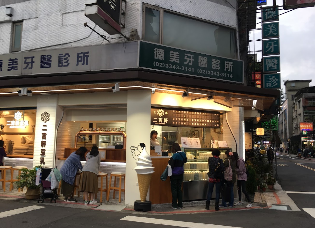 座落於永康街商圈裡,很難不注意這家生意很好的豆乳店,門口的豆腐椅子好吸睛、好可愛,也有內用座位,現場可以看到做豆乳的機器,豆乳有11種口味相當多元,還有很創新的口味像是小黃瓜,現場有提供試喝,也有賣豆花和豆腐,不過個人覺得豆花有點偏貴,所以只吃了冰淇淋和豆乳?