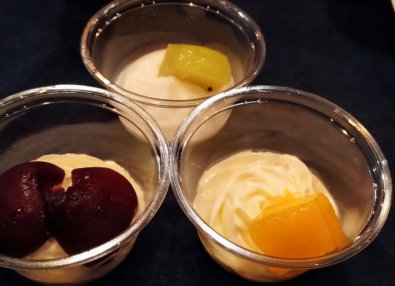 裡面的三種酸甜新鮮水果風味鮮明,加上三種鹹甜酸風味的乳酪,非常清爽的口味,底層酥脆塔皮以及上層Q彈塔皮的口感,製造味覺、視覺、觸覺的全新體驗,很喜歡主廚堅持只用新鮮水果的精神!