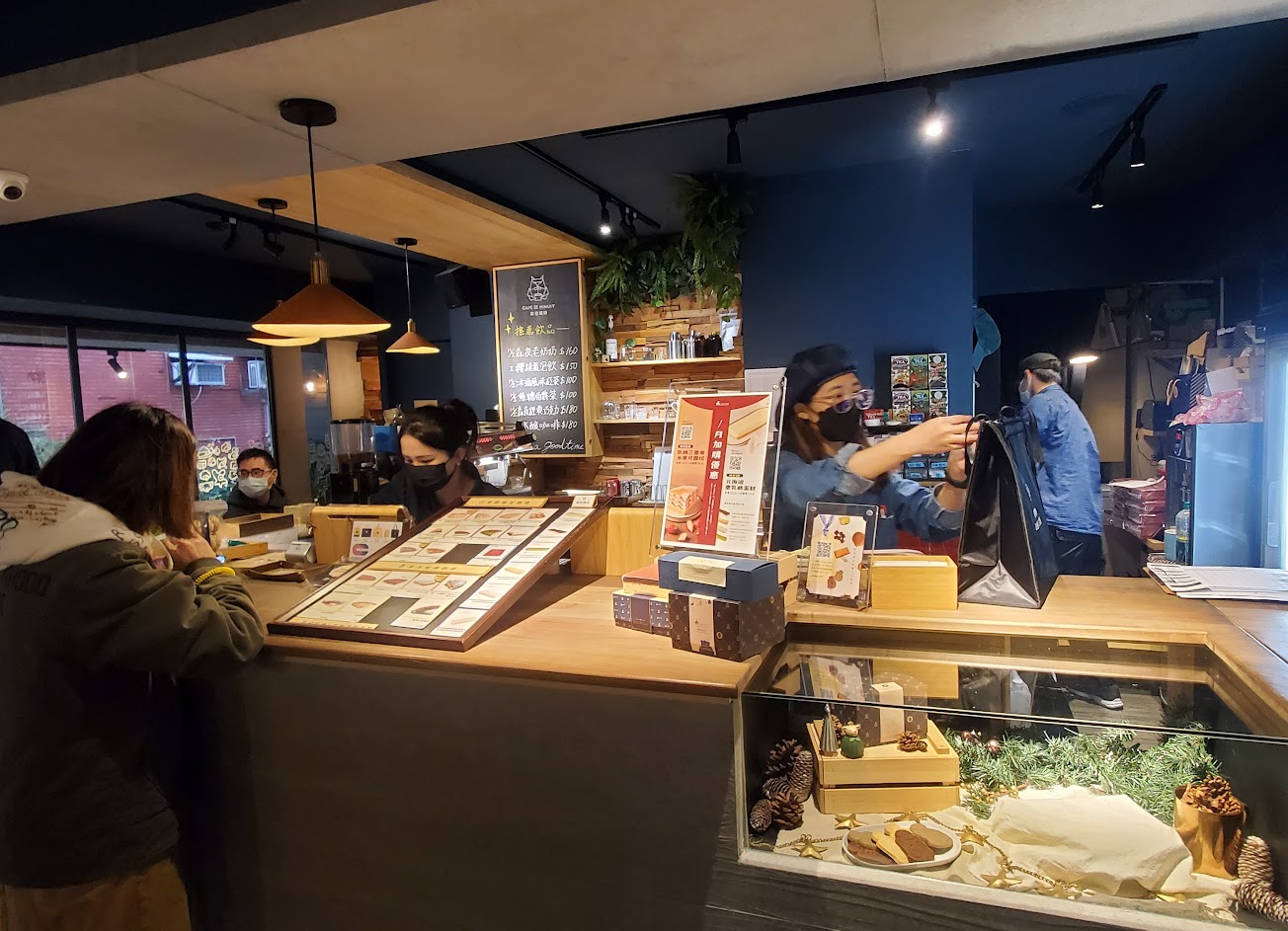 輪到我的時候,櫃檯還是搞不清楚你是來內用還是外帶(我想應該是沒什麼位子內用的關係吧),然後開始問要哪個甜點(但我是想甜點配咖啡),略顯尷尬。