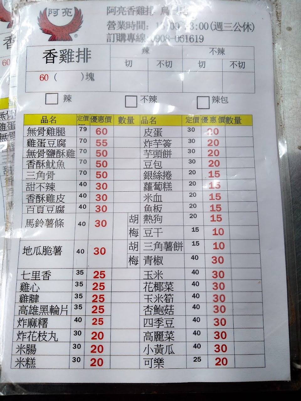 2024最新在地推薦餐廳的菜單_阿亮香雞排-烏日店的菜單、圖片