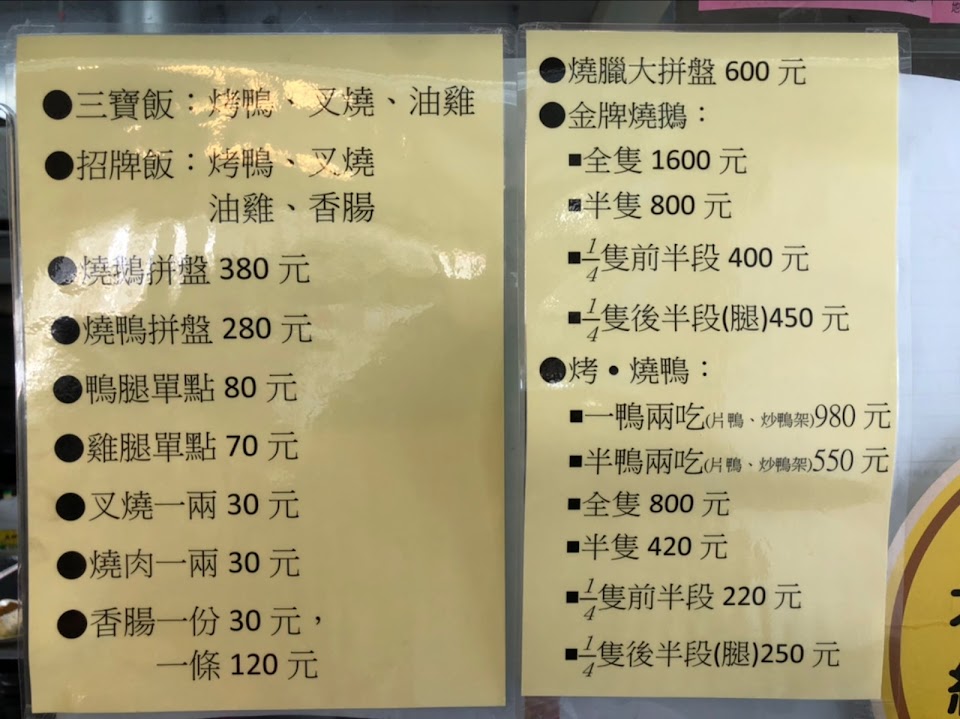 內容物有:脆皮燒肉、蜜汁香腸、烤鴨、油雞、叉燒