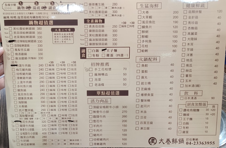 2024最新在地推薦餐廳的菜單_大卷鮮鍋的菜單、圖片