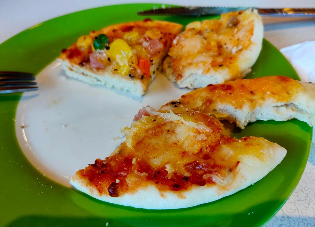 披薩是賣場冷凍小披薩,很難吃。挫冰感覺是咬冰塊,只是淋上果醬。覺得店家要多用點心,2顆星是環境算不錯