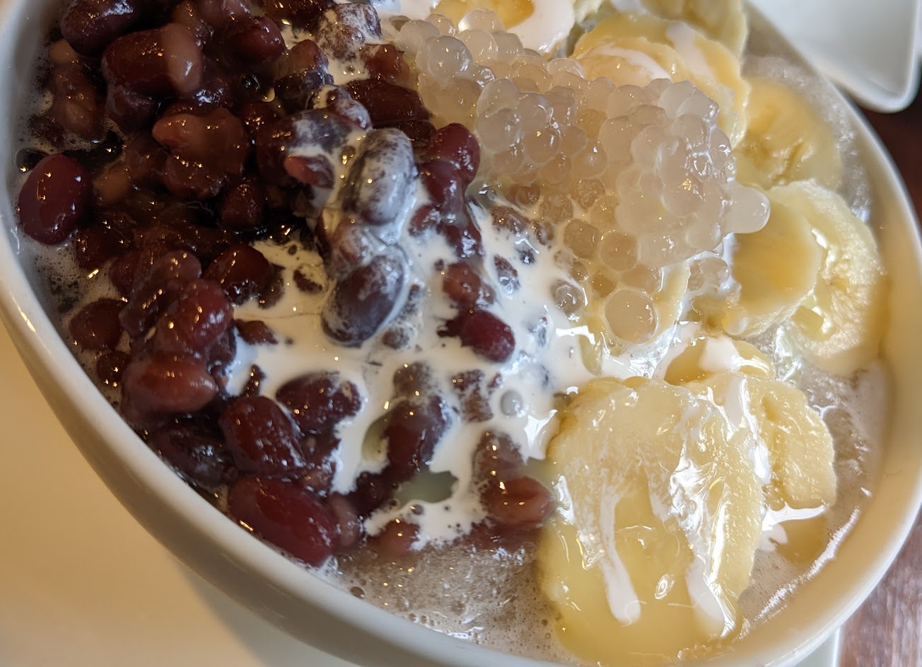 點了紅豆豆花,是有焦香味的那種,豆花很綿密,糖水也很香,就是料非常少⋯紅豆少到還以為我點原味