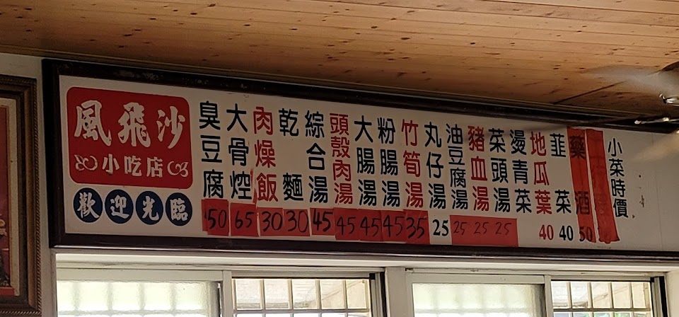 風飛沙小吃店,是神岡隠藏在偏鄉的美食,一般都是老客戶互相口傳,在十多年前就以臭豆腐聞名在溪底,也就是溪洲。後來搬至大圳路也只老客户知道,其美食除臭豆腐之外,其他炸物也都不錯,但因生意好常要等一會,平常營業時間都在下午三奌多才開始,例假日休息。