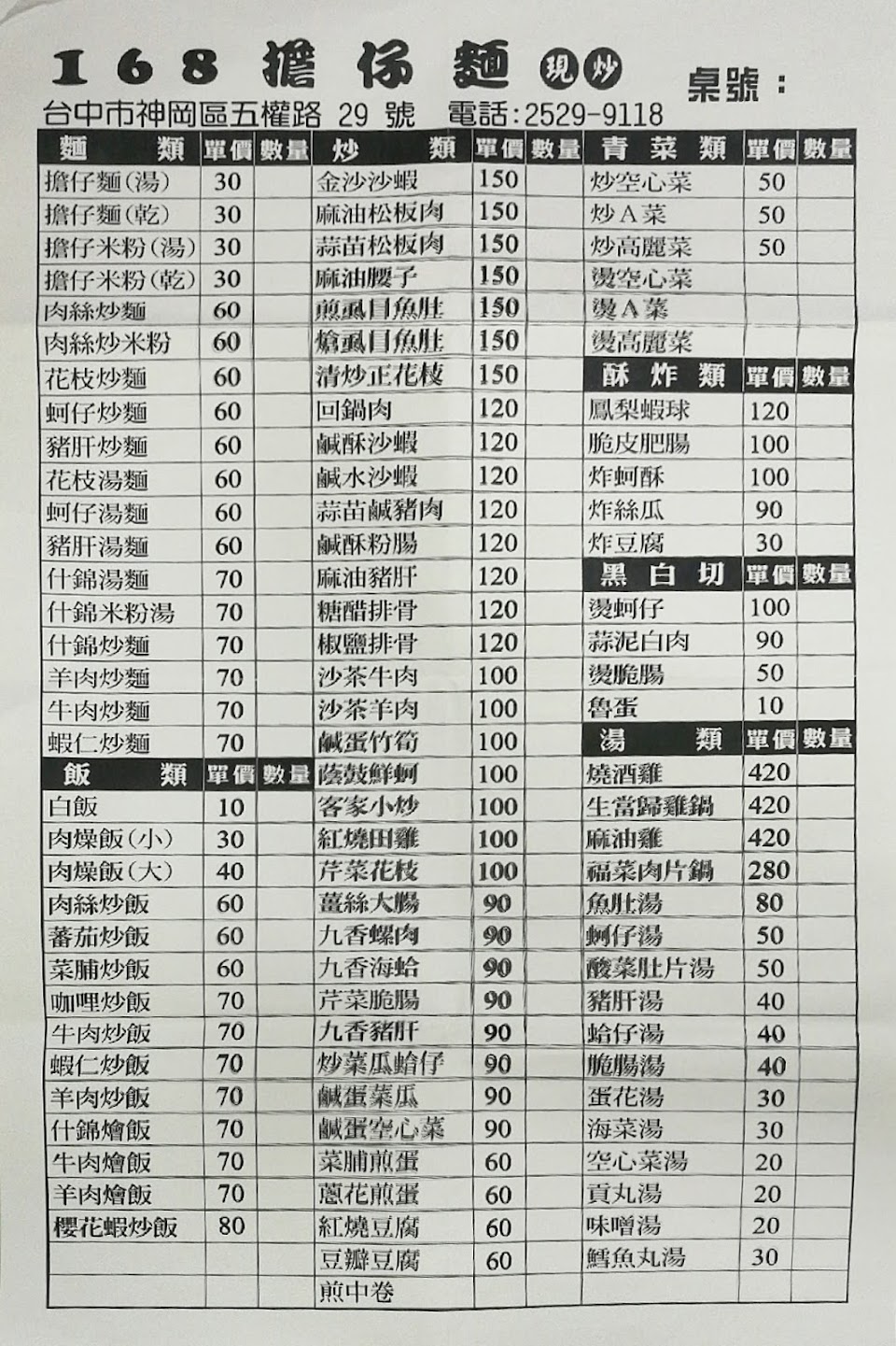 2024最新在地推薦餐廳的菜單_168擔仔麵 平價現炒的菜單、圖片