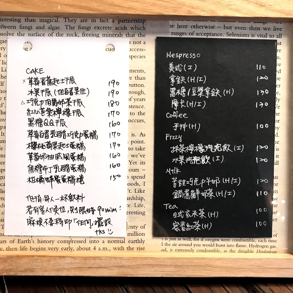 巷內一間看起來清新自然的玻璃門內是小巧可愛的溫馨氛圍,寧靜與輕鬆的心情品嚐著用心做出來的蛋糕非常暇意,店內還有一隻非常有個性的黑白貓咪走在遊走。因為在冷氣口下,熱飲一下就冷了,但是蛋糕不論是口感還是外型設計都附有巧思與細緻的感覺。非常喜歡。
