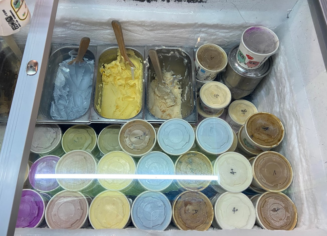 老闆熱情奔放著各個口味的冰淇淋發給我們❤️好吃