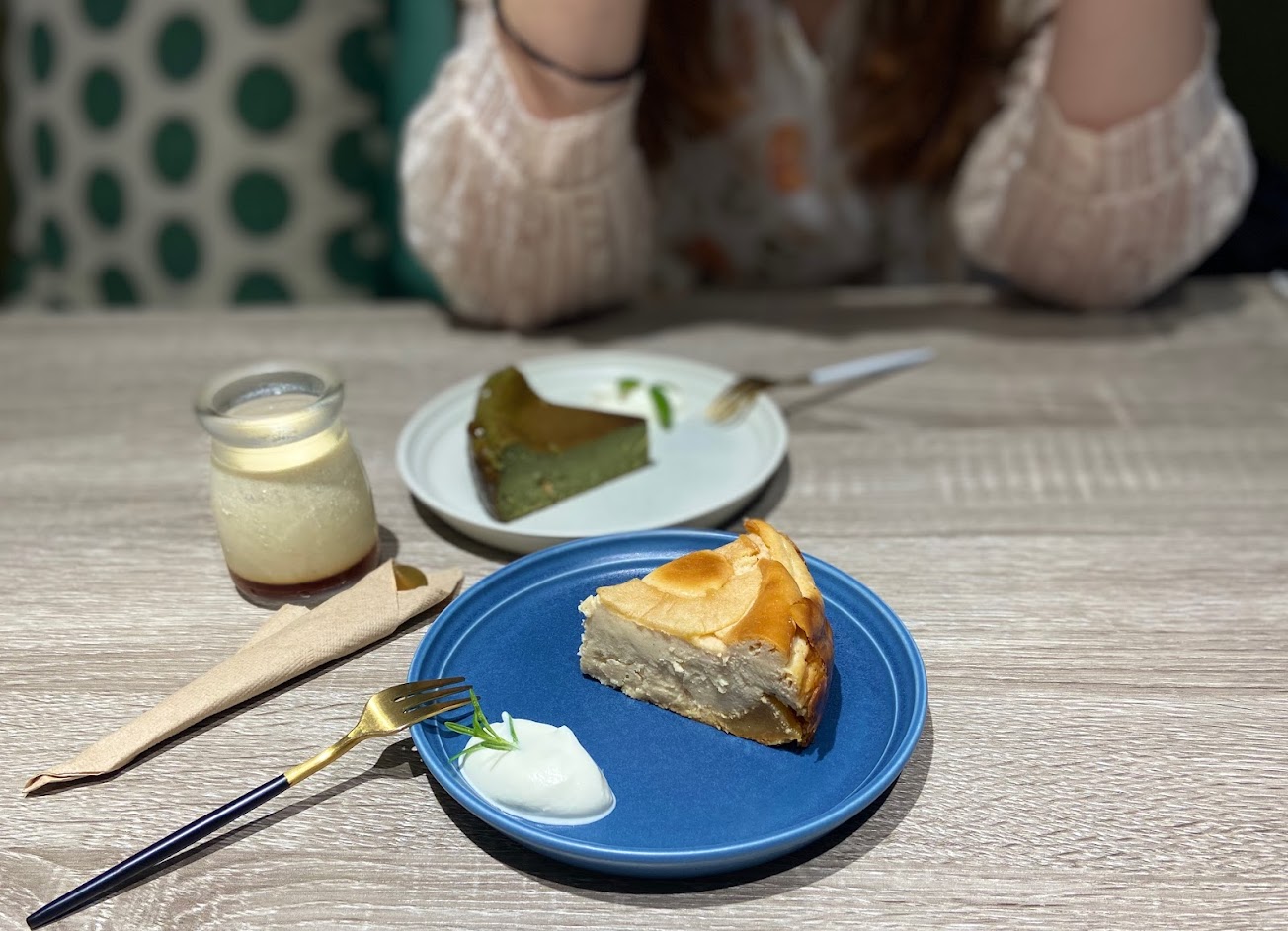 抹茶巴斯克乳酪蛋糕好吃,咖啡也好喝