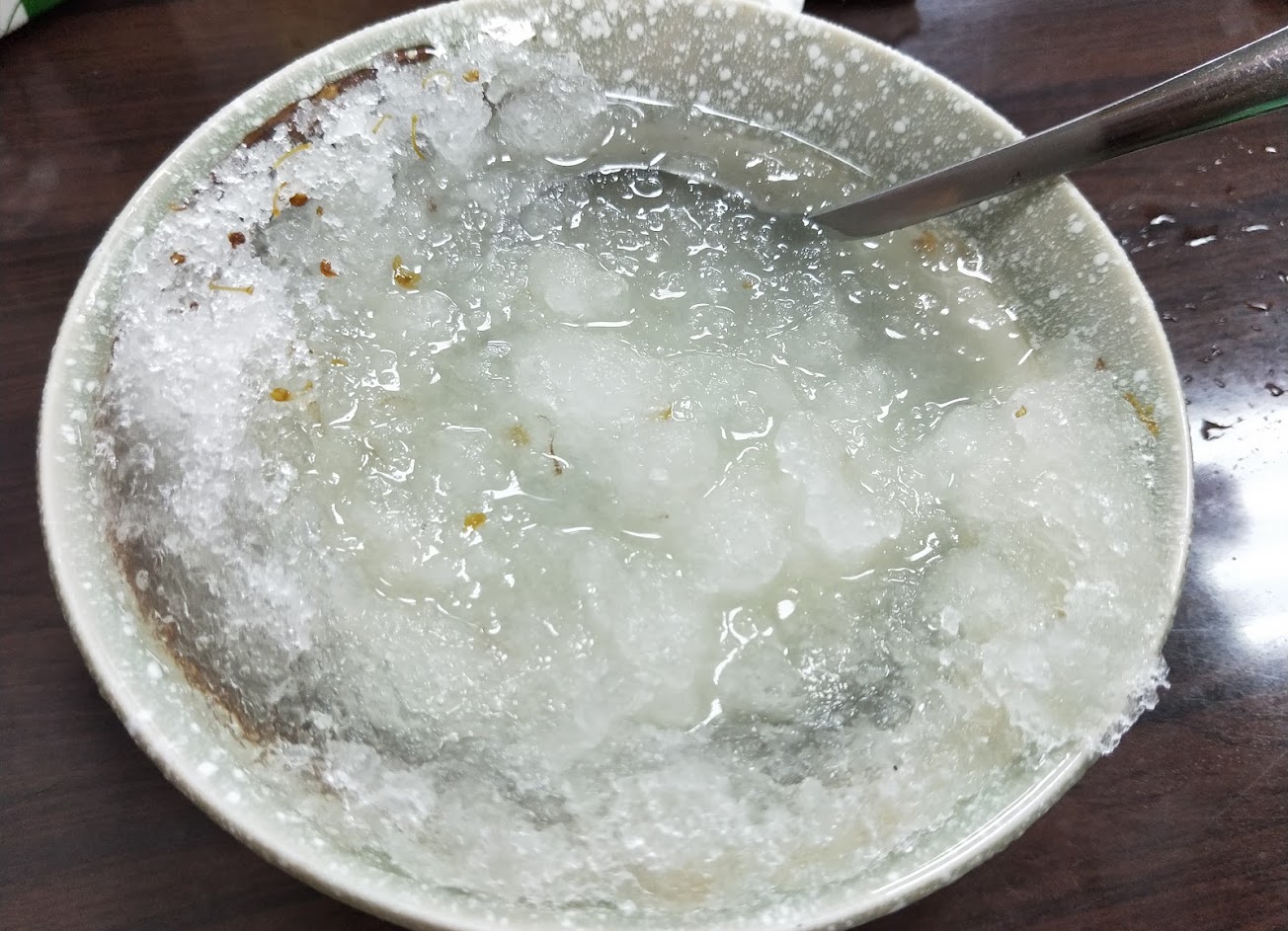 冰裡面有加桂花蜜,口感滿綿密的清冰。櫃檯可以自助加桂花蜜跟檸檬汁,可以去試試。