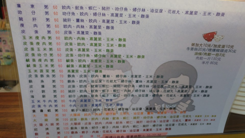 料多 菜單有清楚標示出每個口味的粥有加的料 好吃!