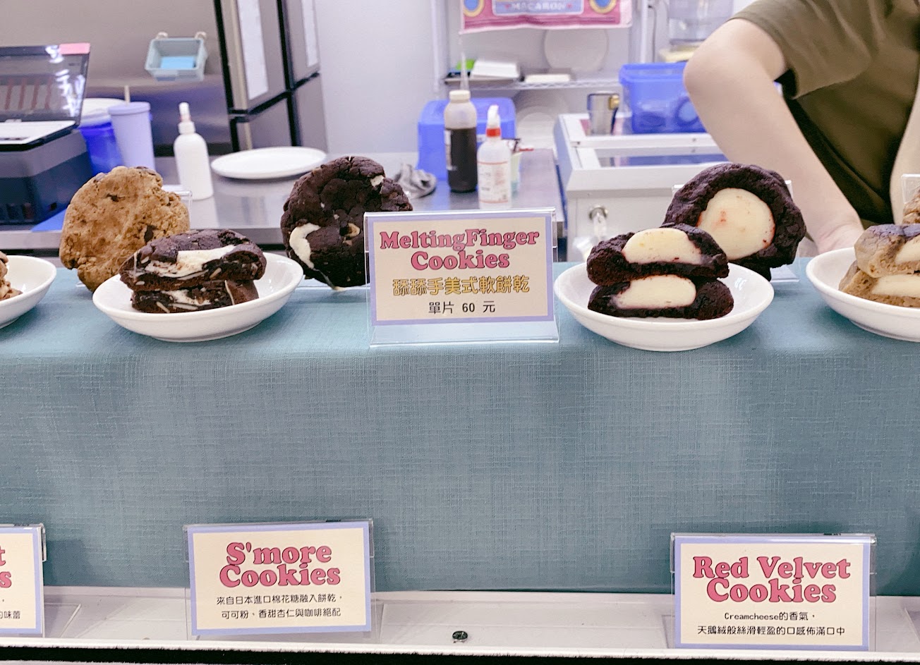 Melting Finger位於瑞安街上,捷運科技大樓站步行約6分鐘,周圍有收費停車場,交通非常方便。甜點店外觀用藍色以及紅色呈現對比,馬卡龍外型相當有創意,包裝用類似普普風設計。馬卡龍每日口味不太一樣,現場販售為主。這次嘗試軟餅乾以及馬卡龍。巧克力棉花糖以及紅絲絨的軟餅乾鬆軟不甜膩,巧克力棉花糖、起司漢堡、伯爵紅茶以及愛麗絲口味的馬卡龍整體口感佳,味道香濃,適合搭配咖啡享用。Melting Finger整體充滿特色,甜點愛好者必嘗試,未來會再回訪。