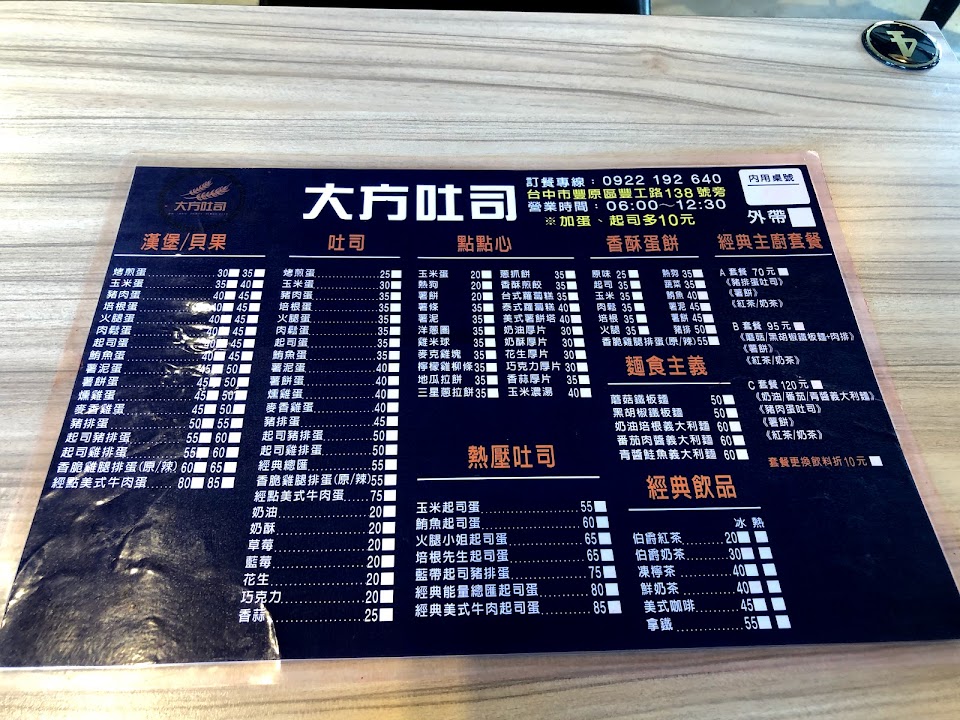 2024最新在地推薦餐廳的菜單_大方吐司-豐原總店的菜單、圖片