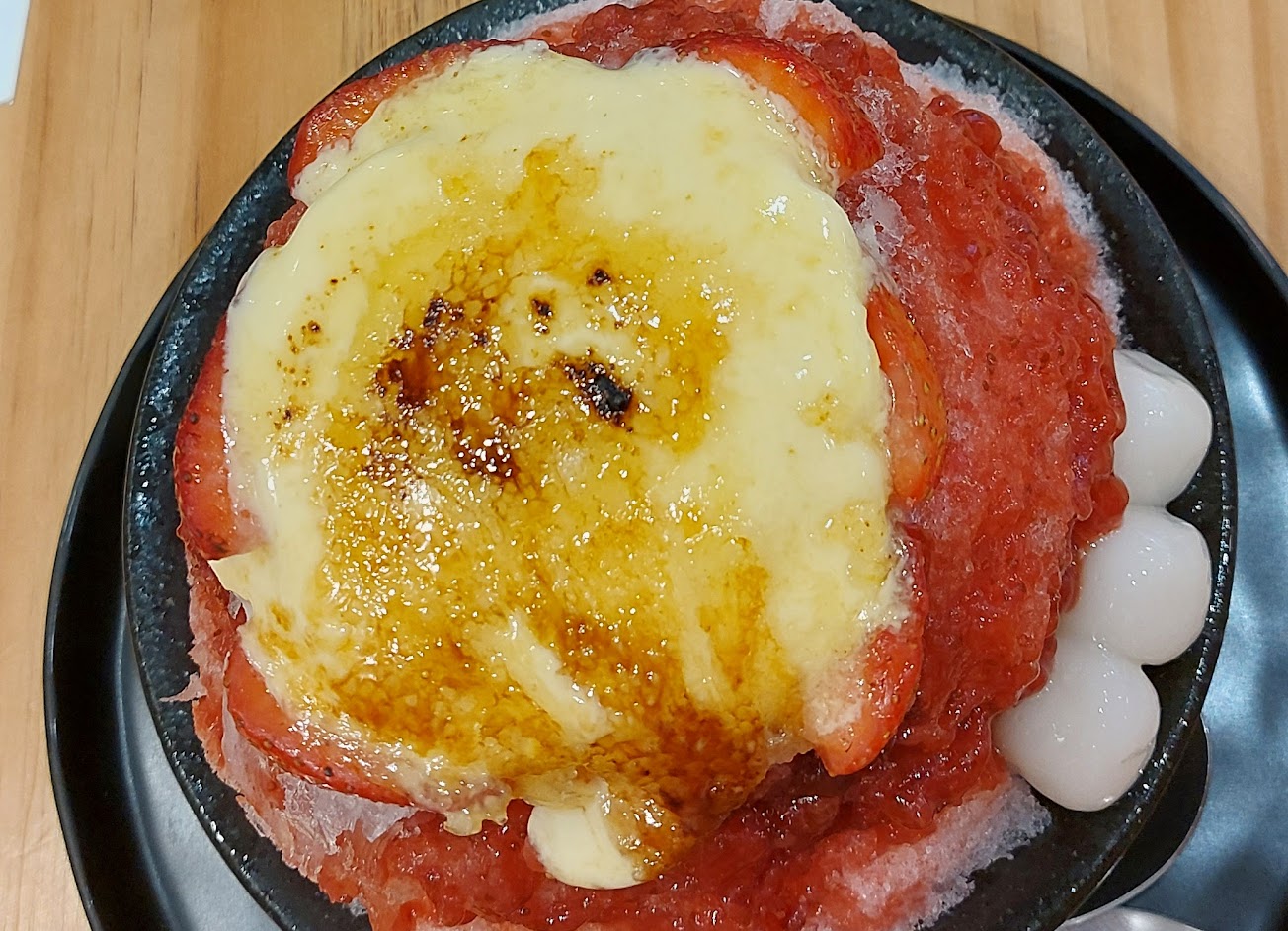 除了將白砂糖燒成焦糖的過程吸睛外,以及可以提一下布蕾的綿密,冰體本身不到細緻,很容易結塊,此外,果醬、芒果、茶凍、客家湯圓…等量少少的,我真的是來吃冰的
